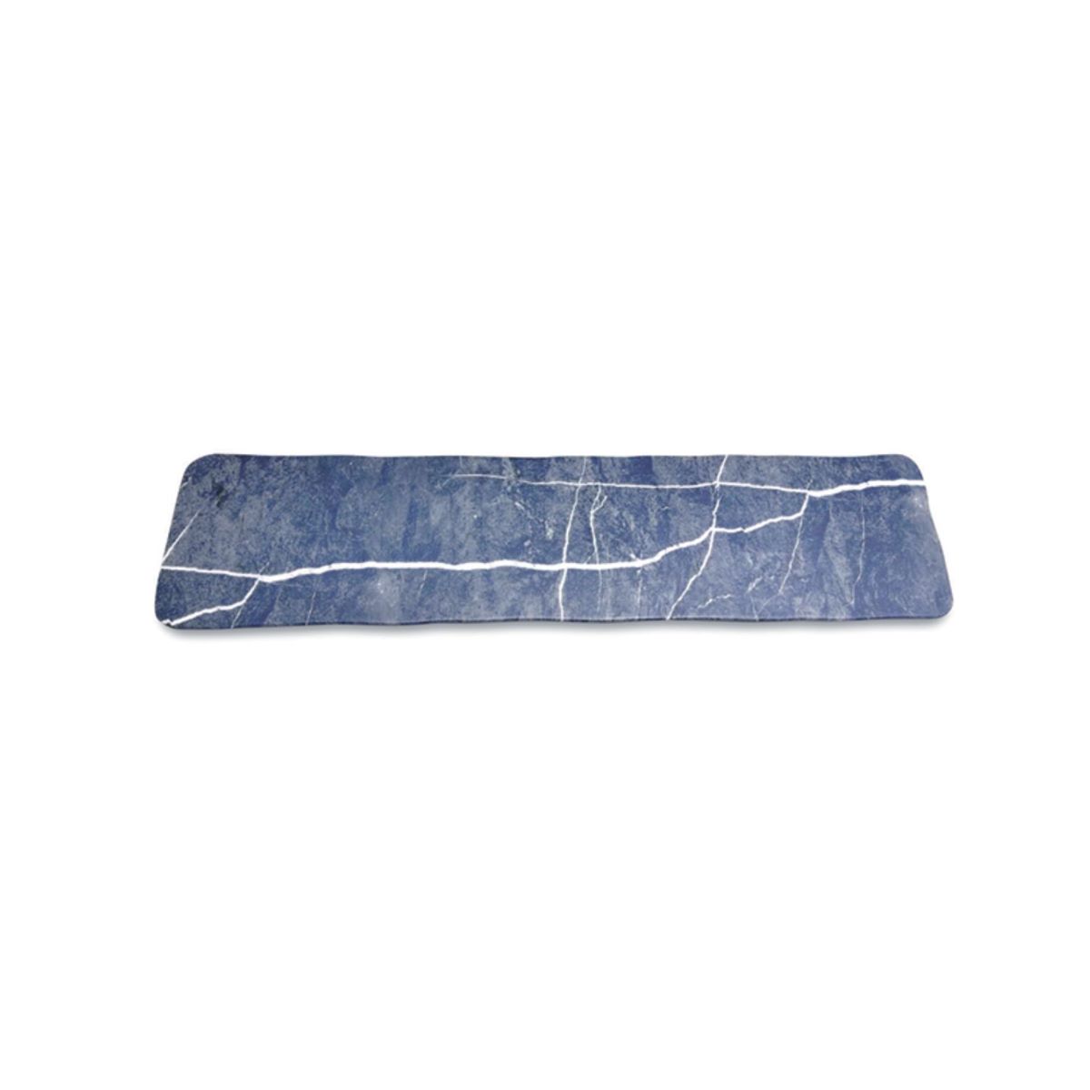 Espectacular bandeja alargada que parece piedra natural, nadie diría que se trata de una increíble imitación en melamina que no se rompe. Ligeramente elevada, para conservar su forma plana facilitando su manipulación. Dispone de soportes anti-deslizamiento en la parte inferior. Disponible también en formato redondo (ver ref.430283).
