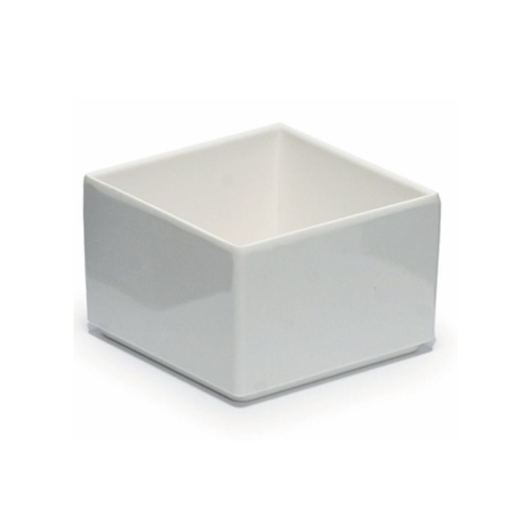 Se trata de un bol cuadrado irrompible para degustaciones/salsas. Es apilable, pues su base está diseñada a tal efecto. Es un producto estrella, pues combina muy bien con infinidad de propuestas alimenticias. Disponible en color blanco, negro y bi-color: gris perla y blanco.