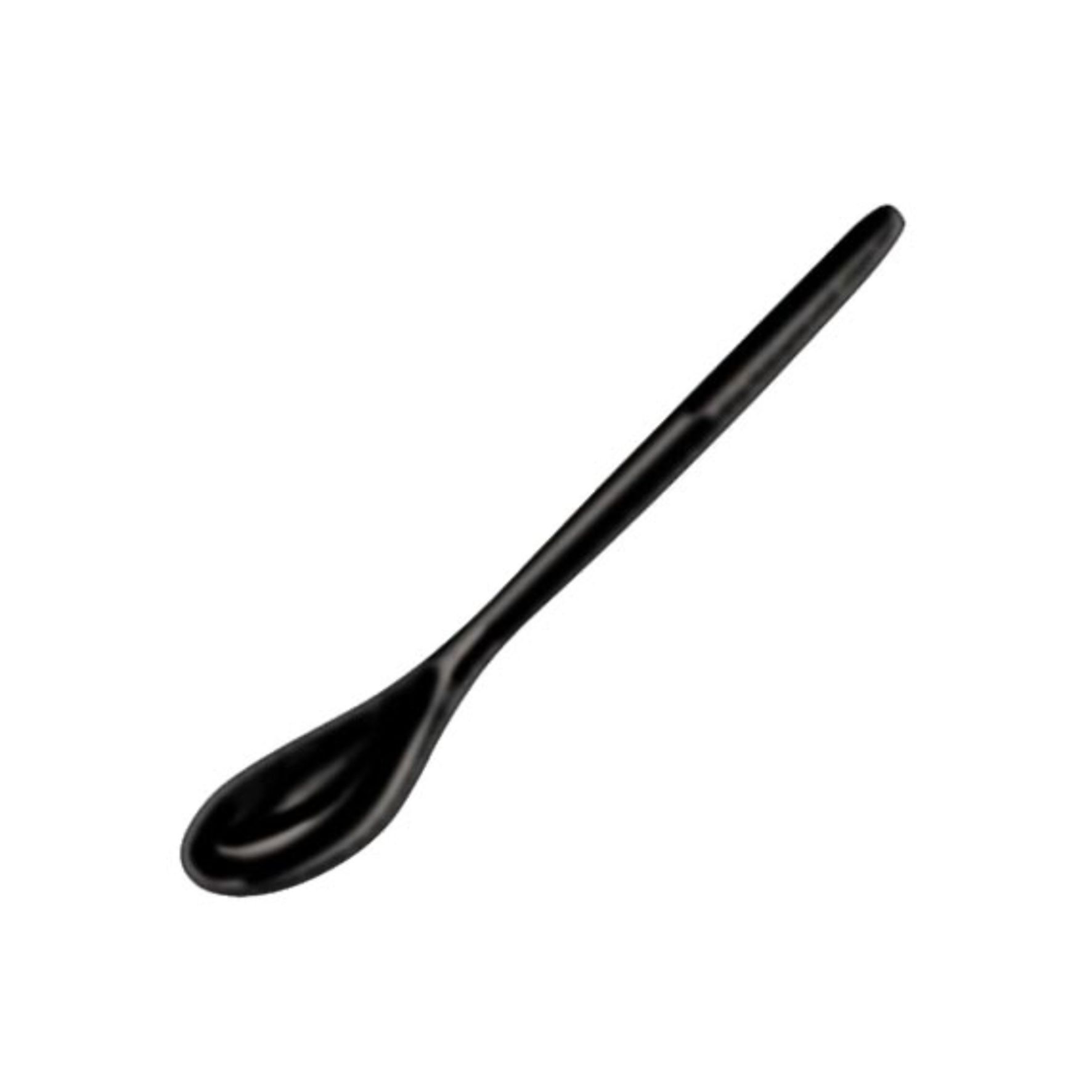 Cucharilla fabricada en melamina, tamaño postre y/o café. Ideal para acompañar delicatessen y degustaciones, pues resulta muy sofisticada al combinarla con platos exquisitos, y evitar así la frialdad inevitable de los cubiertos de acero.