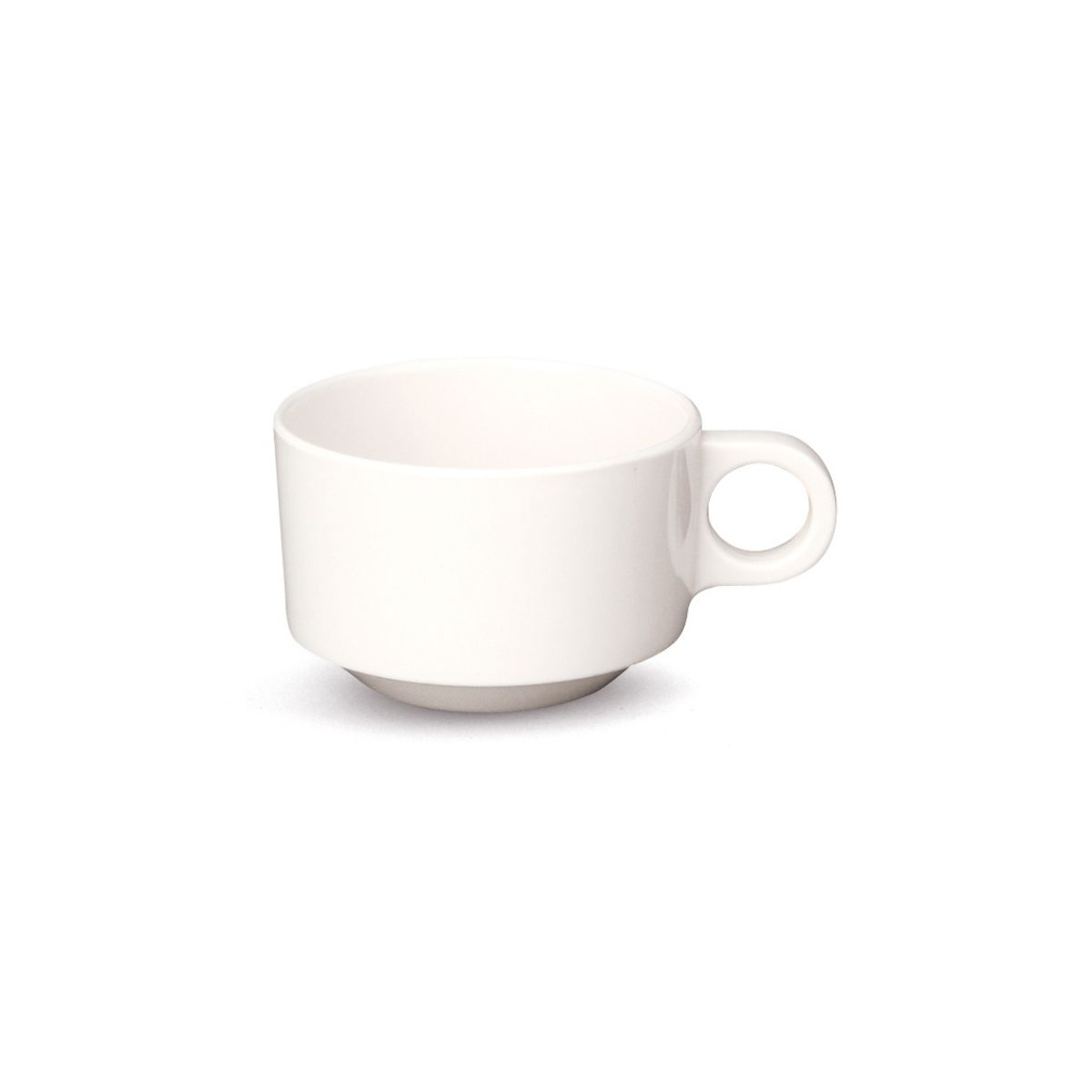 Bonita Taza de Café de 160ml fabricada en melamina, de trazos simples. Apilable. Buena medida tanto para servir café como café con leche. Puede acompañarse del plato de café universal referencia 410810.