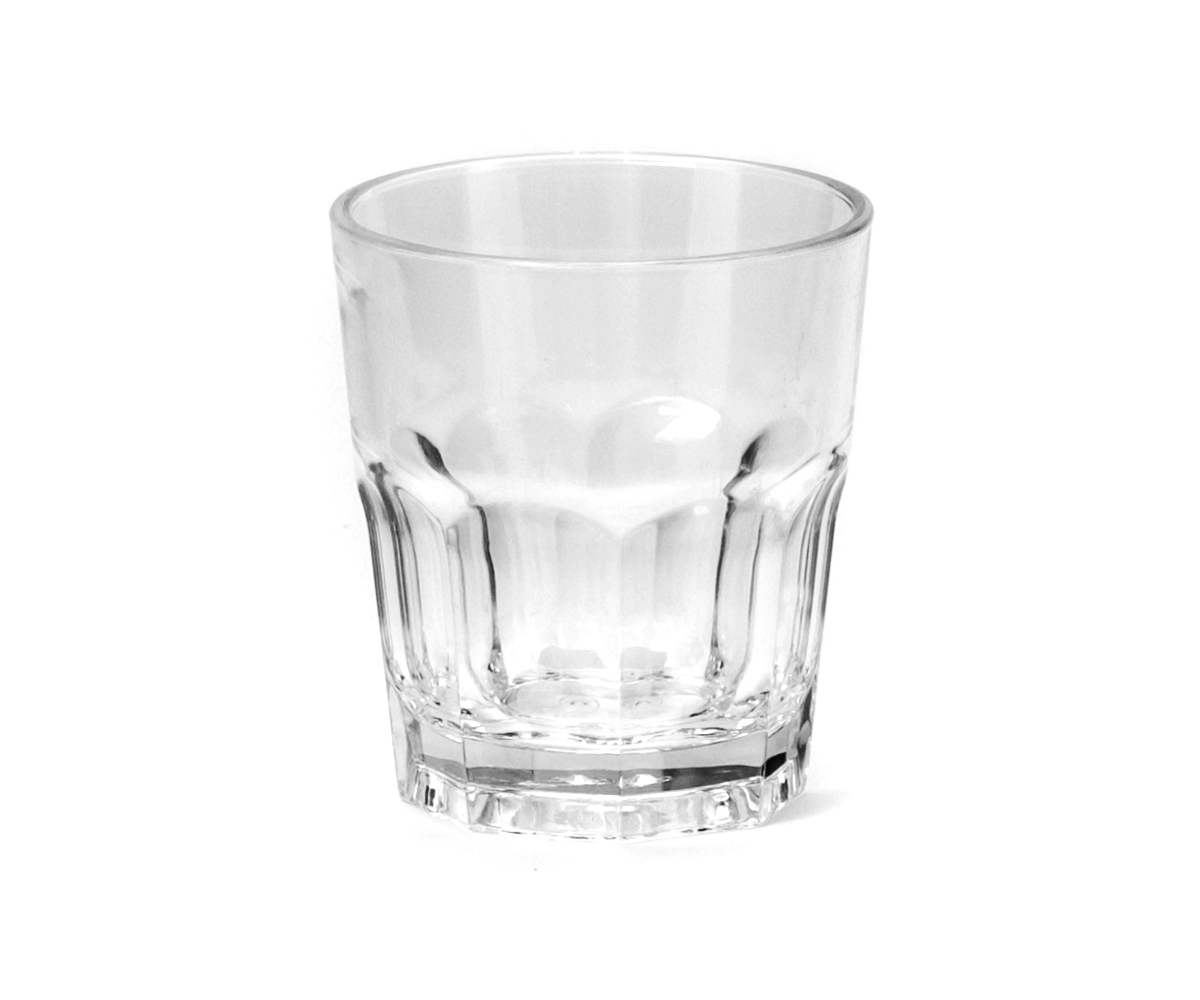 Vaso Granity, irrompible. Un vaso atemporal y polifacético. Ideal para utilizar tanto con refrescos como con licores, para postres y cafés, así como degustaciones. Apilable. Su forma externa hace que el desgaste se note menos, aportándole mayor durabilidad. A diferencia de los vasos Granity fabricados en policarbonato (ref.130406, 110106, 110107,,110120, 110121), éstos están fabricados en SAN, material afín. La diferencia está en que no es "tan irrompible" como el policarbonato (a pesar de ser muy resistente) pero a cambio resiste mejor los abrasivos (detergentes y abrasivos externos).